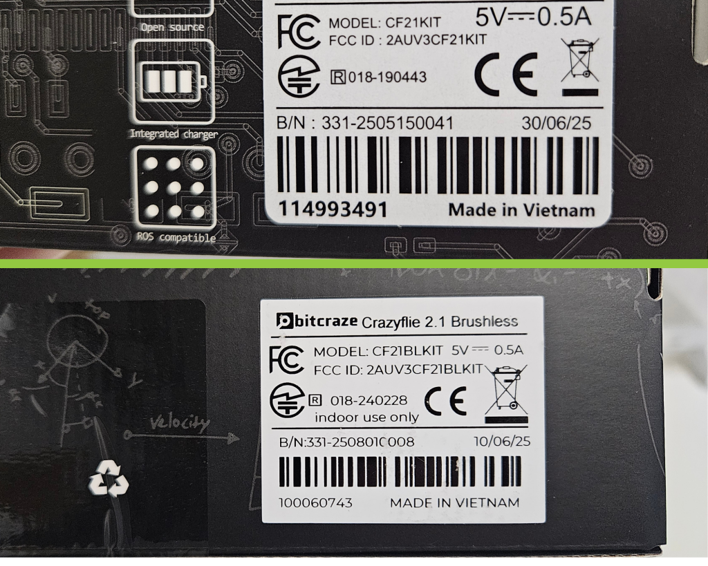 Right now, four of our products are being made in Vietnam: the Crazyflie 2.1+, the Crazyflie 2.1 Brushless, the Flow Deck, and the Crazyradio 2.0. Meanwhile, the Charging Dock is made here in Sweden, and the Lighthouse Base Station comes from Taiwan. That means our production is now spread over four different locations!